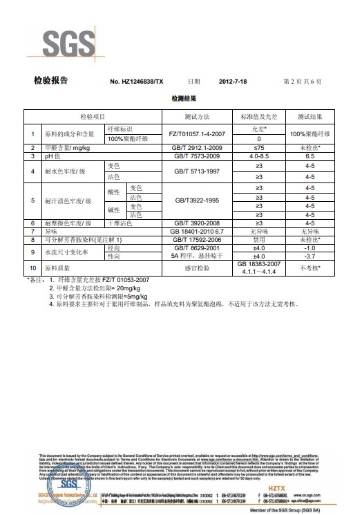 2012年7月18日,我司通过了SGS产品检测。在长期的努力中,我司严格按照国家产品质量标准生产,结合公司自身特色不断的创新。此次通过SGS产品检测,对于馨源海绵有限公司来说是一个重要的里程碑。质量是第一,品质是未来,为求质量与品质,馨源海绵有限公司将不断的创新与开拓。