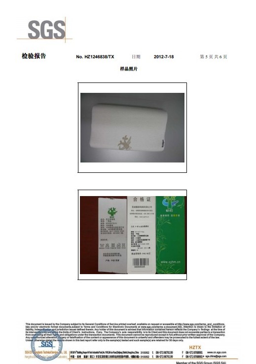 热烈祝贺我司慢回弹记忆枕通过SGS产品检测